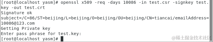 - openssl生成证书私钥(这里需要输入两次密码,请谨记)