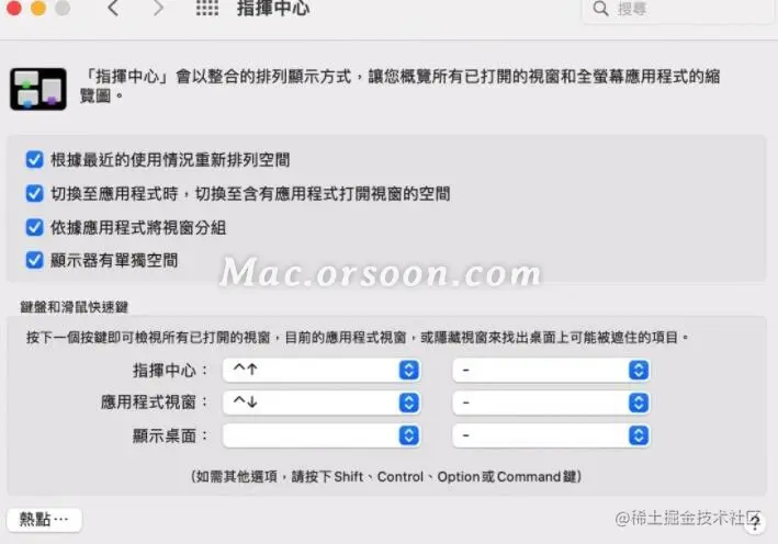 要开启、关闭,或是更换快速备忘录的热点位置,我们可以打开「系统偏好设定」,选择「指挥中心」这个功能。