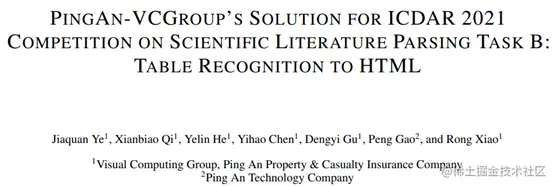 [1] Jiaquan Ye , Xianbiao Qi , Yelin He , Yihao Chen , DengyiGu , Peng Gao , and Rong Xiao. PingAn-VCGroup's Solution for ICDAR 2021Competition on Scientific Literature Parsing Task B: Table Recognition to HTML.arXiv:2105.01848, 2021.