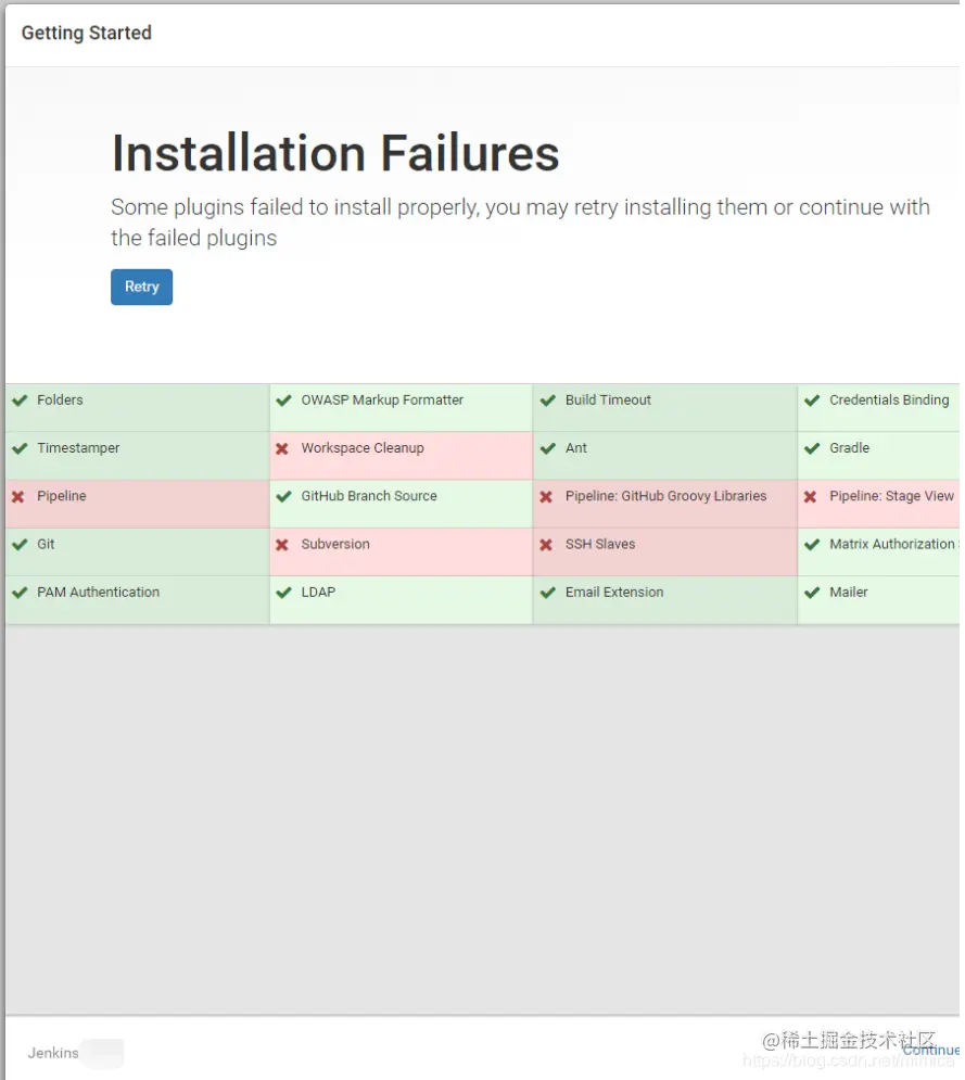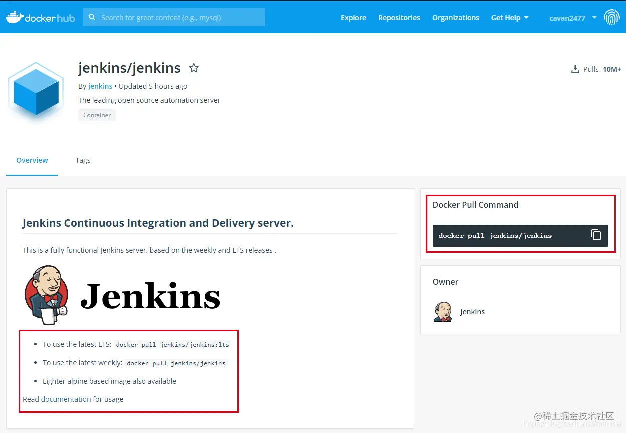 Jenkins的docker镜像需要从官网直接获取,非官方来源的docker有可能因为Jenkins版本过低导致后续的插件安装问题。