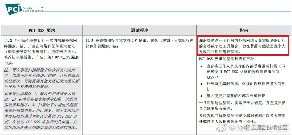 而在金融行业支付卡数据安全标准PCIDSS[16]针对漏洞扫描给出了两个较为明确可操作的定义,如下面2图。