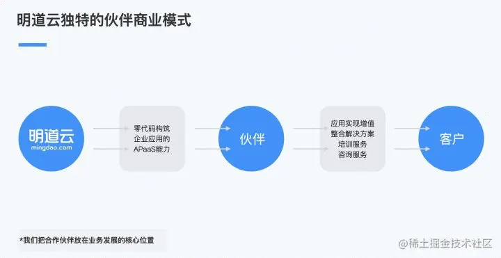 我们的商业模式可能还要更特殊一些,我们不是简单提供一个工具,明道云选择的商业模式,是向卖水人卖水,其实行业ISV(独立软件开发商)服务商是“卖水人”的主力军,他们已经在比如能源行业、金融行业等特定的领域深耕多年,他们面临的挑战更大,既要考虑客户的需求能不能满足,还要兼顾自己的成本结构是否合理。这样ISV就需要选择解决这些问题的高效工具,其实明道云选择的商业模式,主要是服务这些ISV,而不是直接服务行业用户。