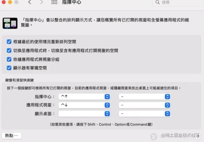 要开启、关闭,或是更换快速备忘录的热点位置,我们可以打开「系统偏好设定」,选择「指挥中心」这个功能。
