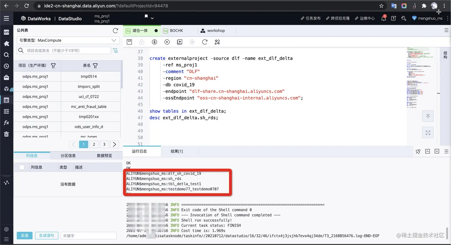 create externalproject -source dlf -name ext_dlf_delta -ref ms_proj1 -comment "DLF" -region "cn-shanghai" -db covid_19 -endpoint "dlf-share.cn-shanghai.aliyuncs.com" -ossEndpoint "oss-cn-shanghai-internal.aliyuncs.com";