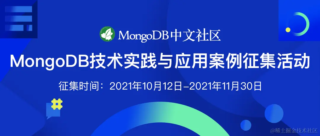 在征集过程我们也将挖掘MongoDB深度用户,促进技术传播与交流,为更多MongoDB数据库用户提供技术应用参考,同时为MongoDB深度用户提供分享平台,建立自身在MongoDB技术圈的个人品牌,创造更多交流学习与展示的机会。