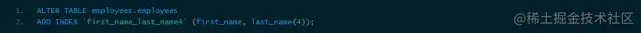 有一种与索引选择性有关的索引优化策略叫作前缀索引,就是用列的前缀代替整个列作为索引key,当前缀长度合适时,可以做到既使得前缀索引的选择性接近全列索引,同时因为索引key变短而减少了索引文件的大小和维护开销。下面以employees.employees表为例介绍前缀索引的选择和使用。