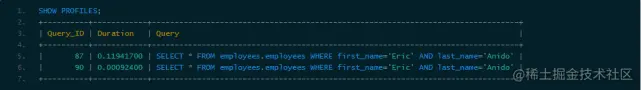 此时再执行一遍按名字查询,比较分析一下与建索引前的结果: