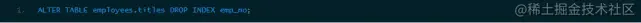从结果中可以到titles表的主索引为<emp_no, title, from_date>,还有一个辅助索引<emp_no>。为了避免多个索引使事情变复杂(MySQL的SQL优化器在多索引时行为比较复杂),这里我们将辅助索引drop掉: