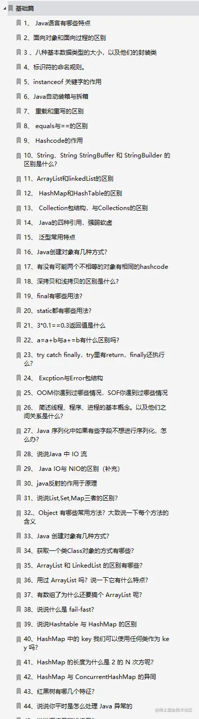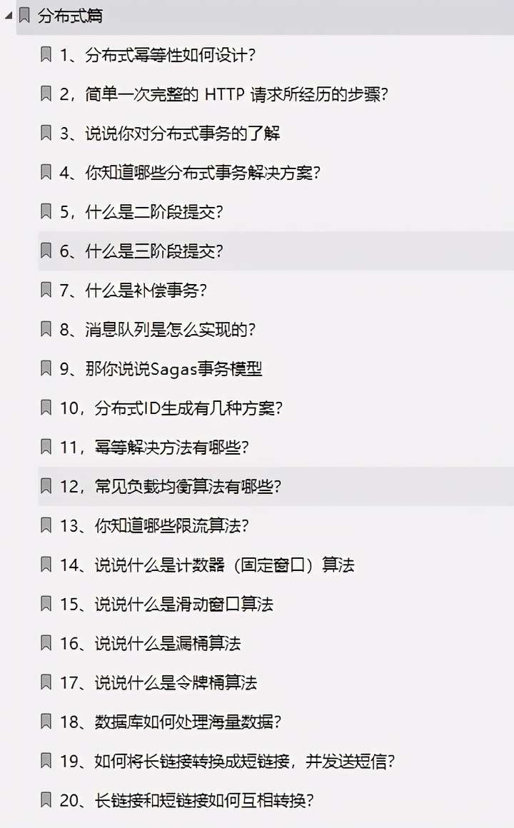 这份面试总结比较多,就不一一的详细介绍了,粗略的将主要内容展示一下,其中含有20+的知识点:
