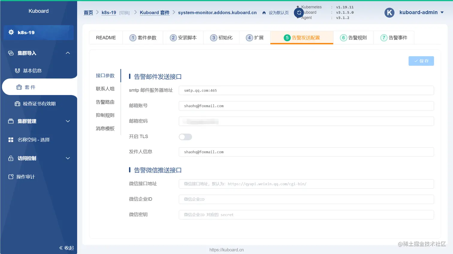 可以通过界面直接配置资源层监控套件发送告警消息: