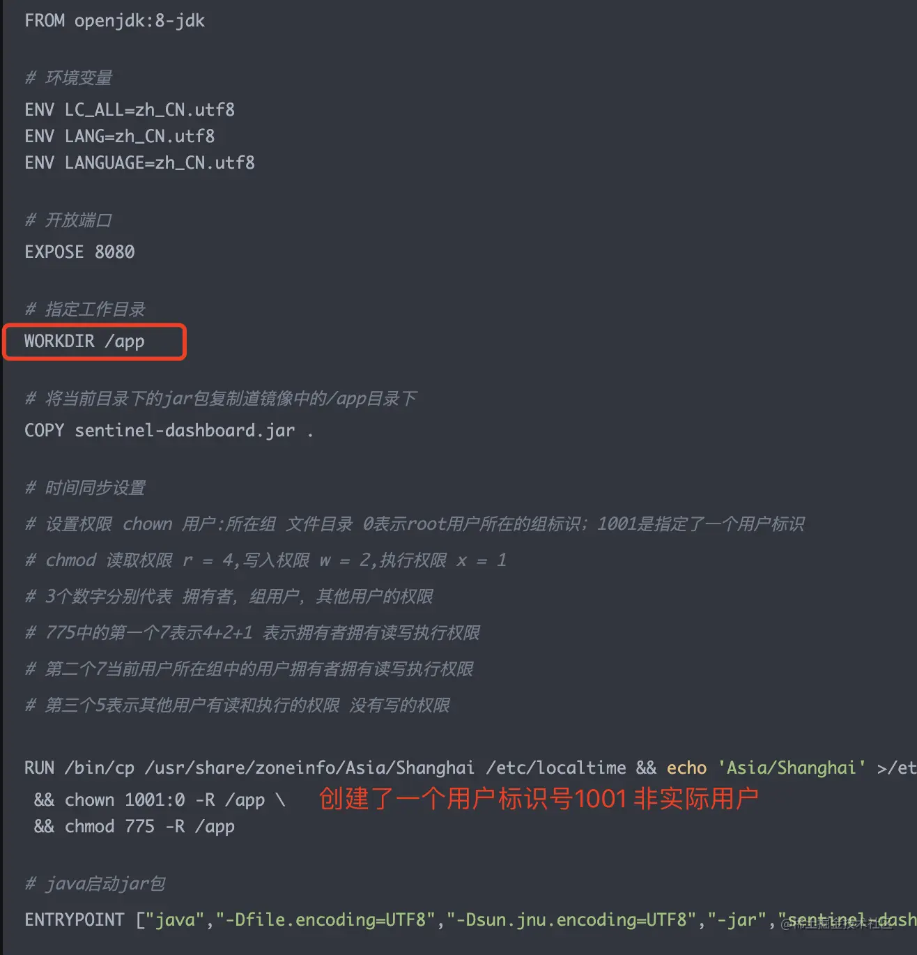 首先查看Dockerfile 确认docker容器中的启动用户在什么目录下是有权限的