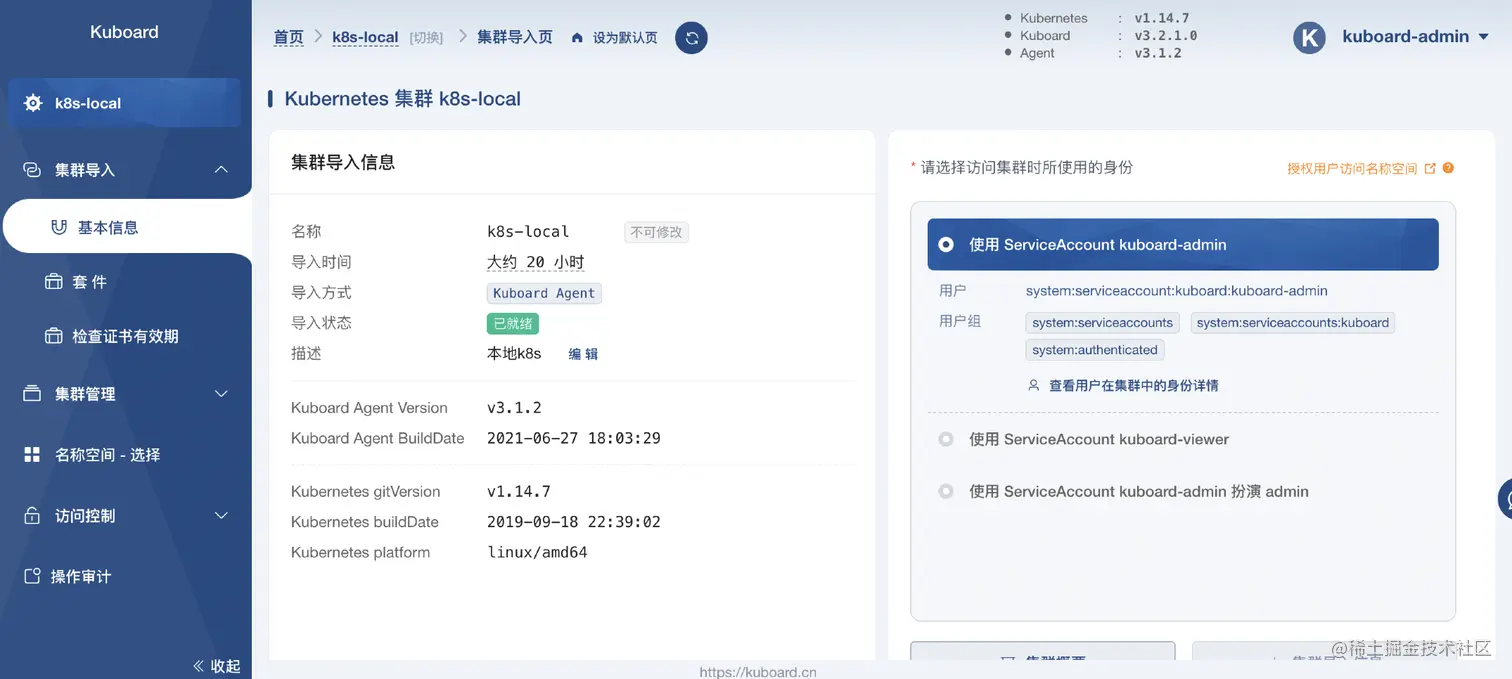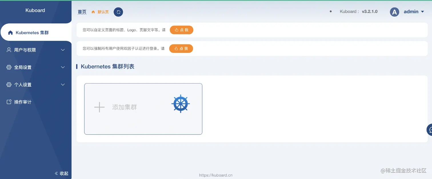 管理员可以将多个 Kubernetes 集群导入到 Kuboard 中