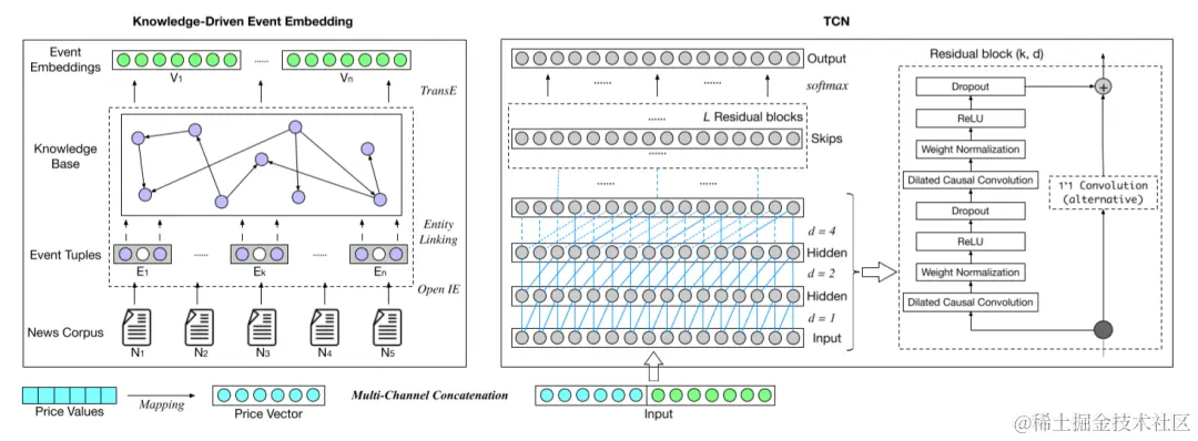 下面这篇文章的内容主要是来自论文《Knowledge-Driven Stock Trend Prediction and Explanation via Temporal Convolutional Network》。这篇文章提出了一种基于知识驱动的时间卷积网络(TCN)的新颖股票趋势预测方法,其中,文中通过对金融财经新闻等非结构化数据进行嵌入处理,然后将嵌入结果以及价格等数据一同输入TCN用于股票趋势预测。实验验证了提出的模型具有较好的预测效果,并且具有更好的模型的可解释性。原论文在文末进行获取。****