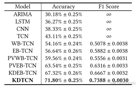 进一步地,不同输入形式的TCN模型被用于进行比较,可以看到提出的KDTCN模型实现了最高的预测准确性。