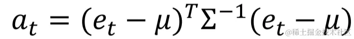 异常检测模块以预测误差为异常指标,从而逐点实现异常检测。其中,预测误差是预测值和真值的残差。训练数据的预测误差分布采用多元高斯分布建模,其中误差向量的高斯分布的均值和方差采用最大似然估计(MLE)计算。