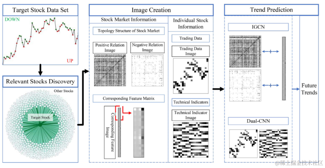 - 本文提出了一种改进的基于股票市场拓扑结构数据的股票市场特征捕获算法。此外,还设计了一种基于个股信息的Dual-CNN来捕捉个股特征。