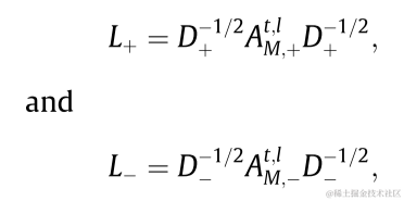 第一步,根据正负关系图像和相应的特征图像对股票市场信息进行整合。首先,基于正负关系图像,得到两个拉普拉斯矩阵,即:\