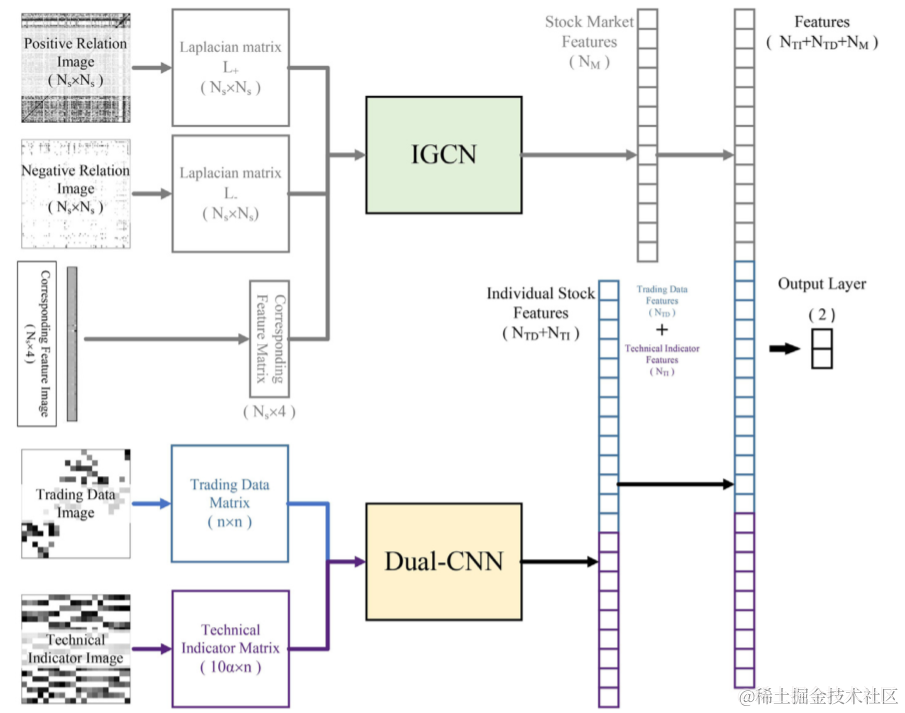 - 本文提出了一种基于图卷积特征的卷积神经网络(GC-CNN)模型,将IGCN和Dual-CNN相结合,将股票市场特征和个股特征合并为联合特征,用于股票趋势预测。