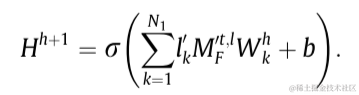 之后得到的结果与对应的特征矩阵一同进行图卷积操作,过程如下:\