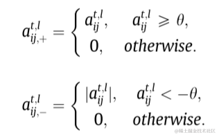 进而,通过设定一个阈值,将上述矩阵按照正相关和负相关划分为两个矩阵,表示为 和 :