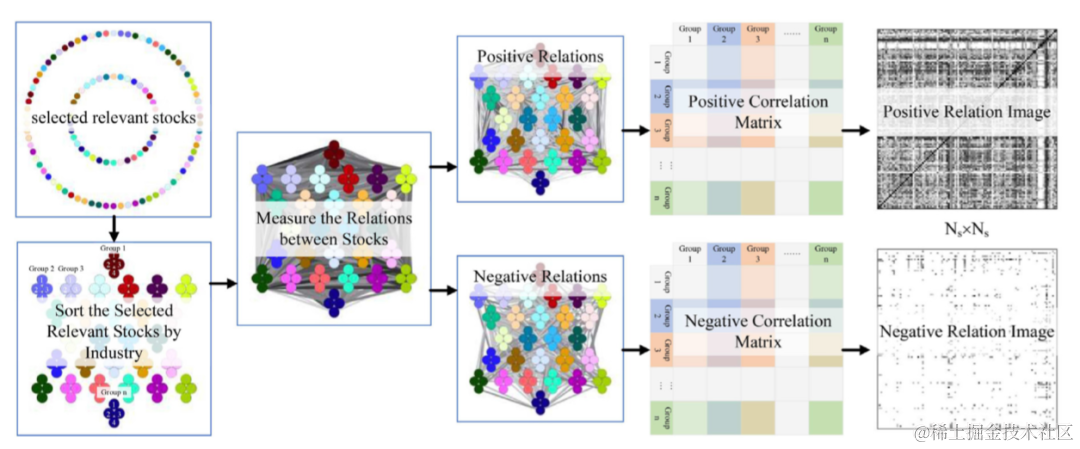 在提出的IGCN中,如下图所示,根据正相关图像和负相关图像,以及对应的特征图像,分别经过两步获取股票市场特征。