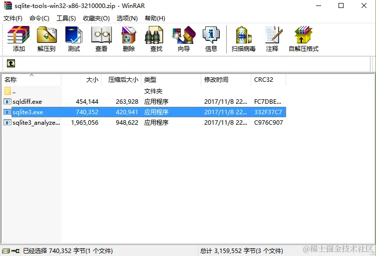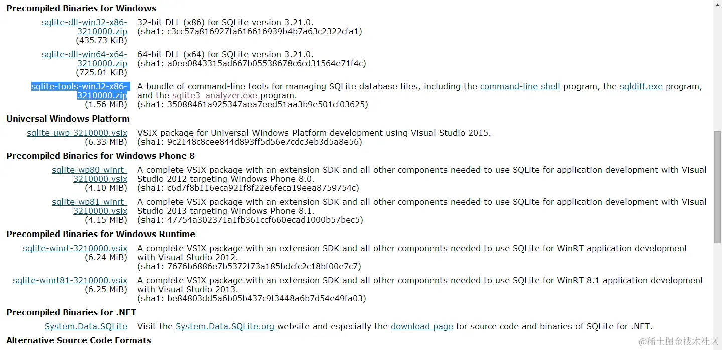网址:www.sqlite.org/download.ht… 下载sqlite-tools-win32-x86-3210000.zip,注意下载匹配自己操作系统的文件。