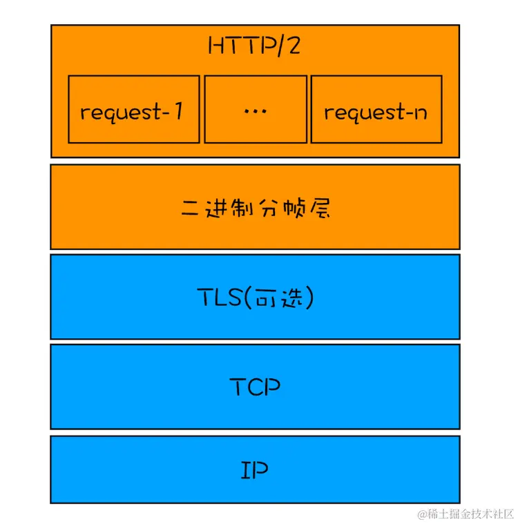 - 浏览器准备好请求数据,包括了请求行、请求头等信息,如果是 POST 方法,那么还要有请求体。这些数据经过二进制分帧层处理之后,会被转换为一个个带有请求 ID 编号的帧,通过协议栈将这些帧发送给服务器。