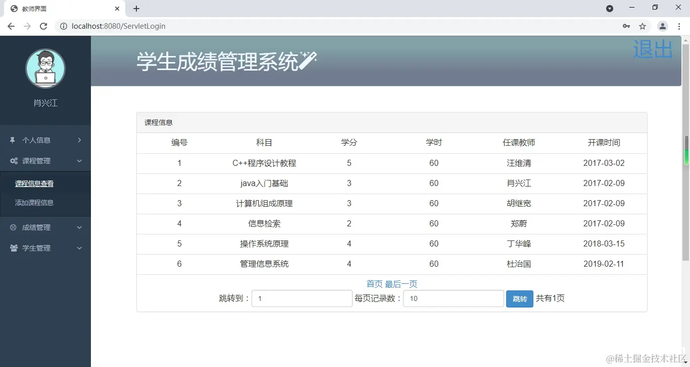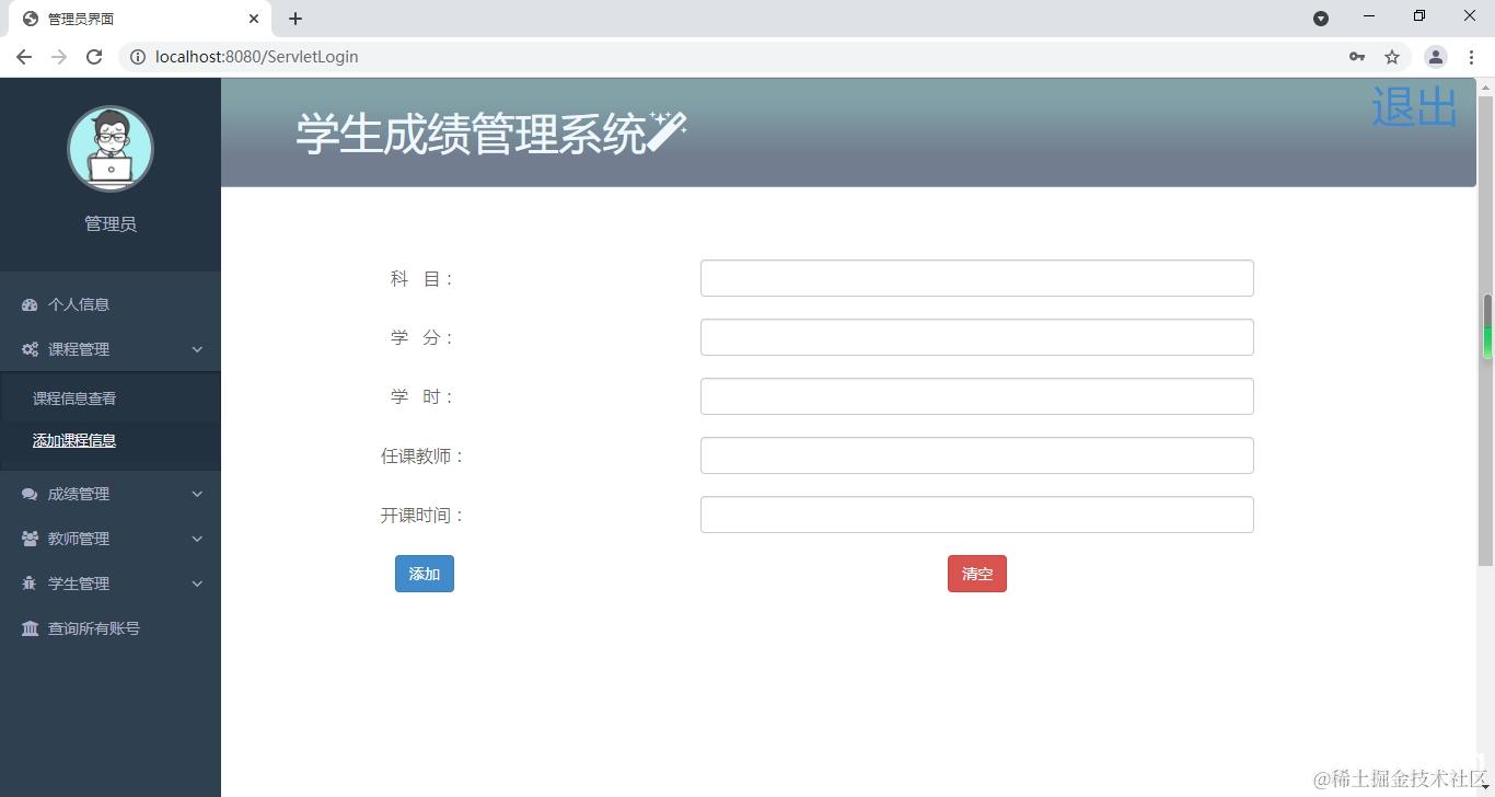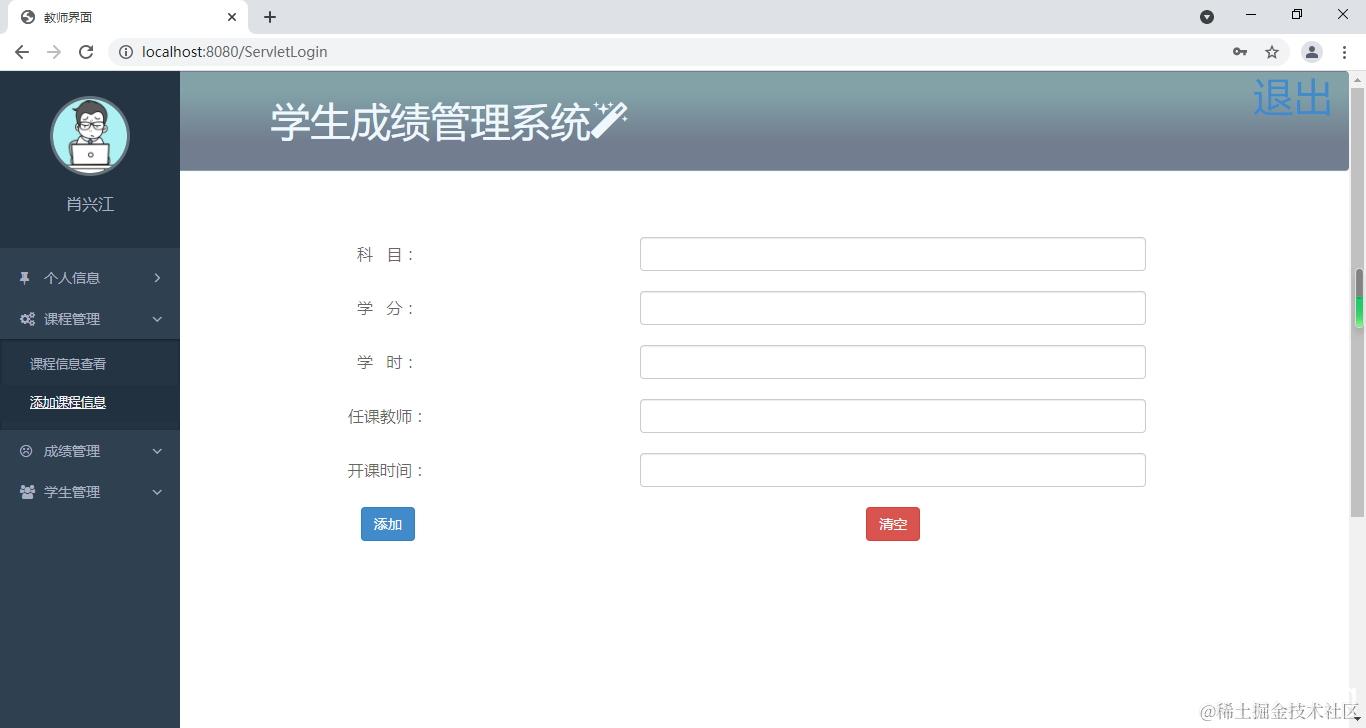 课程信息查看,添加课程信息。