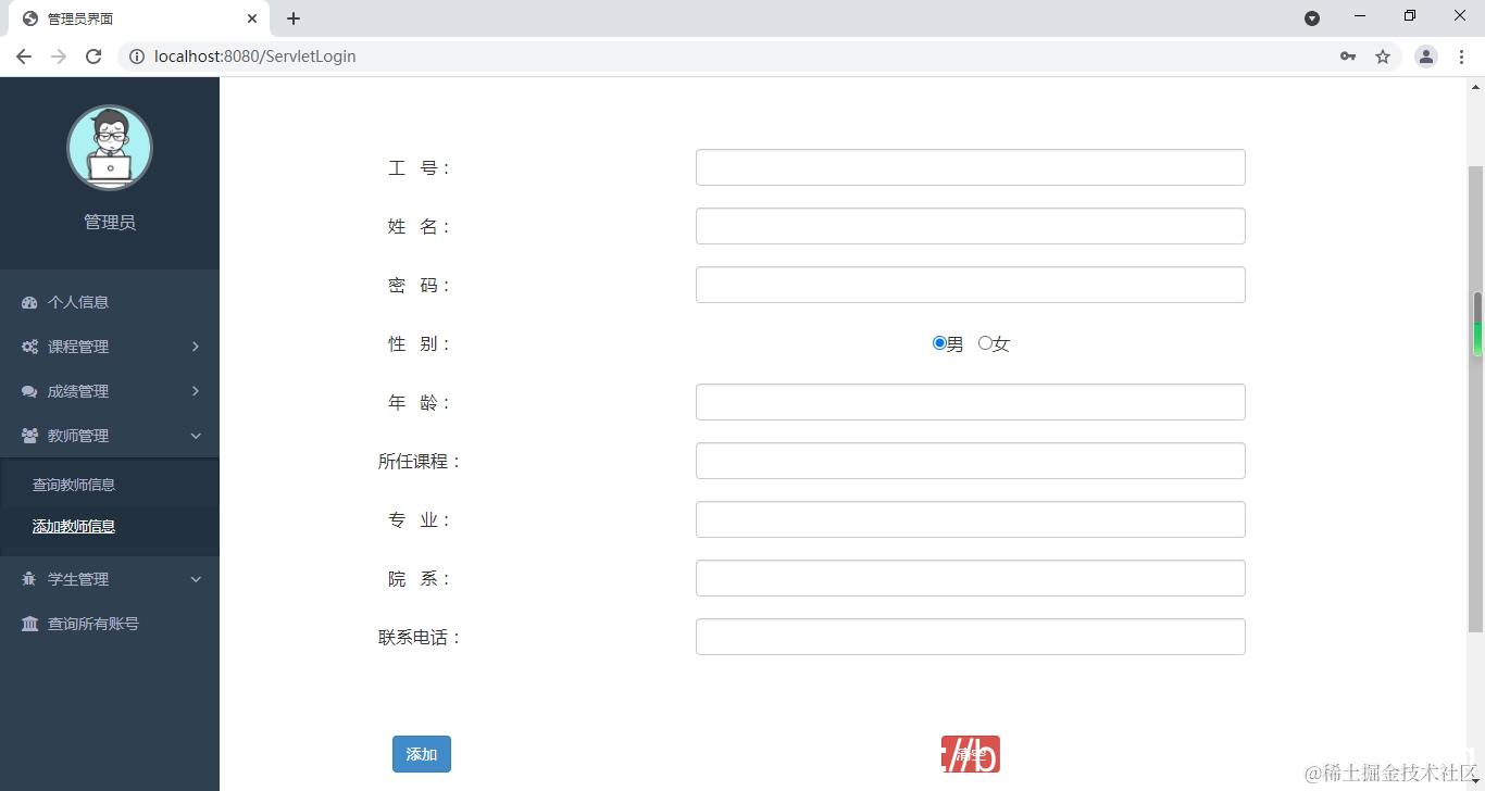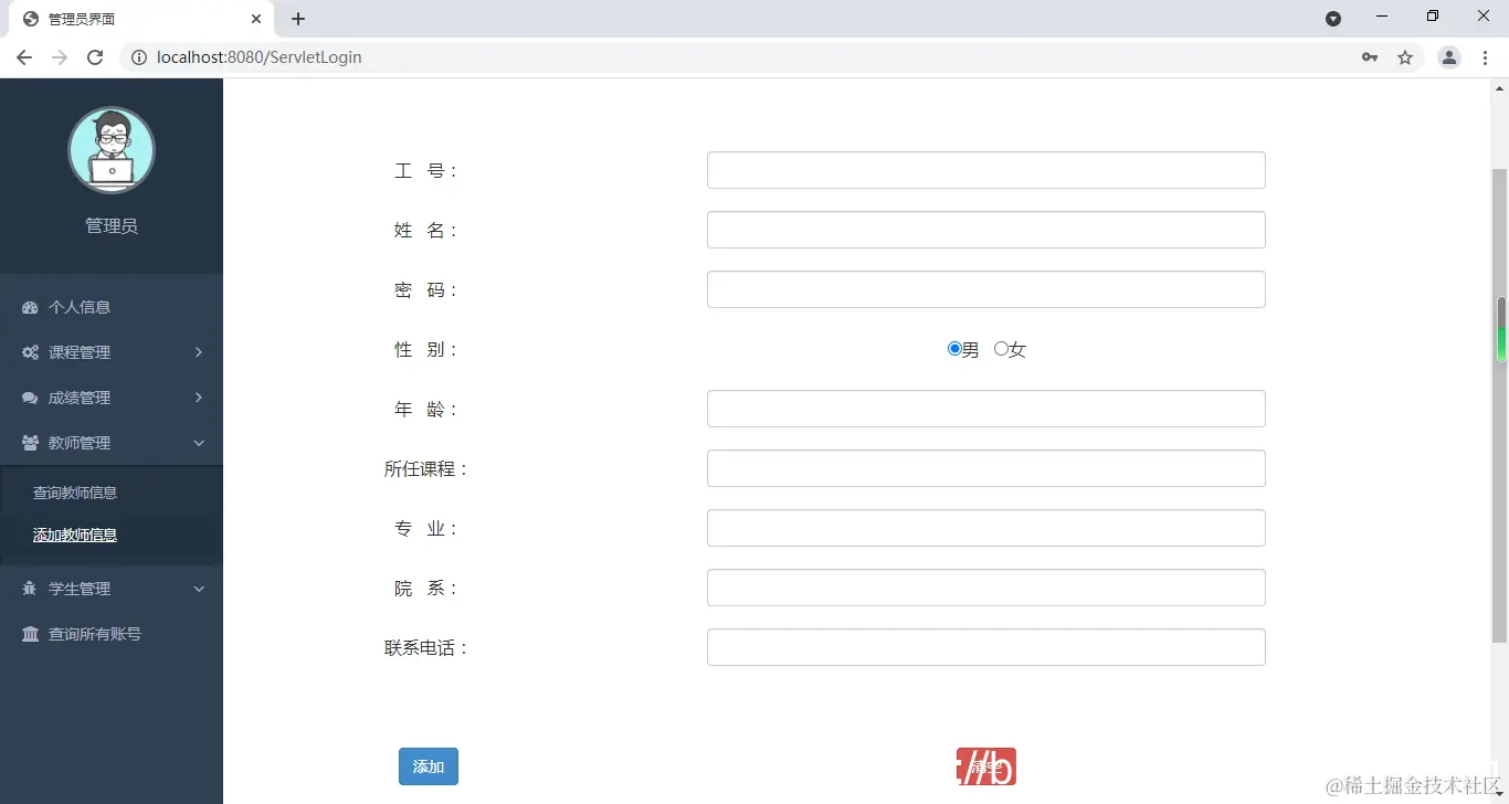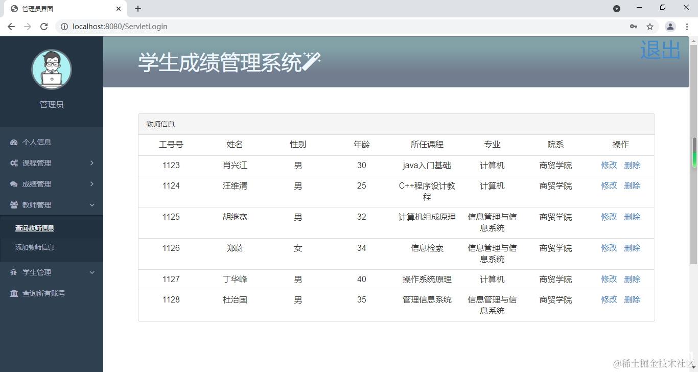 查询教师信息,修改教师信息,删除教师信息,添加教师信息。