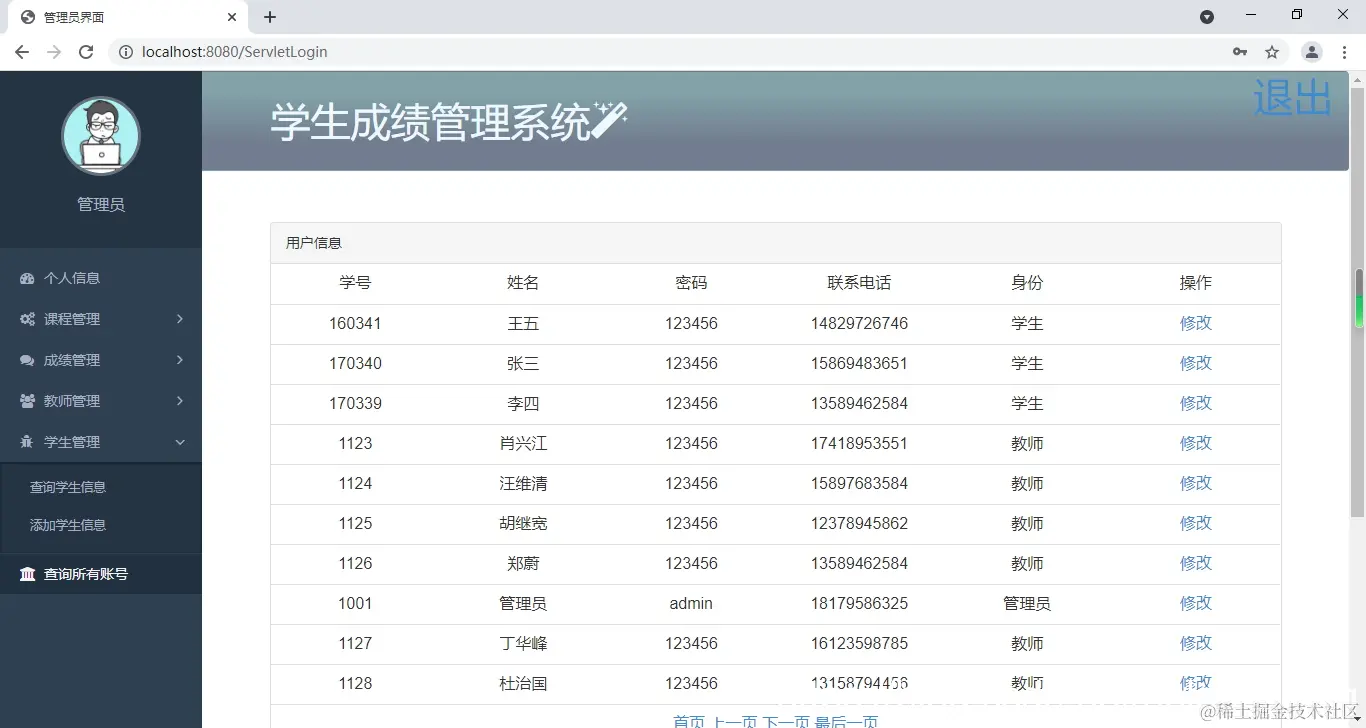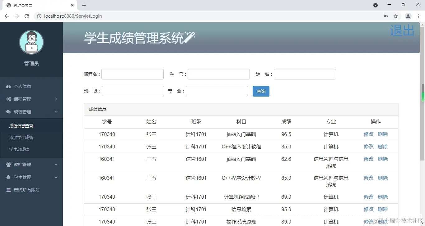 Java+Servlet+JSP+Bootstrap+Mysql学生成绩管理系统源码