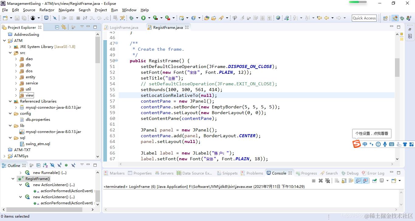 Account account1 = new Account(Integer.parseInt(accountNo), Integer.parseInt(pwd), name, 0);