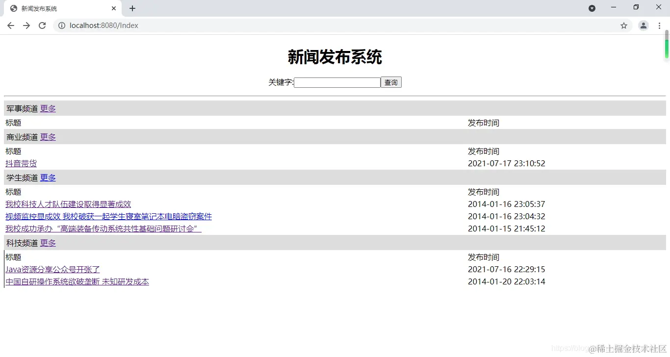 新闻的增删改查与发布。