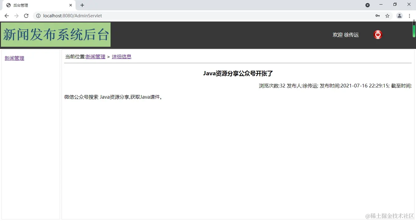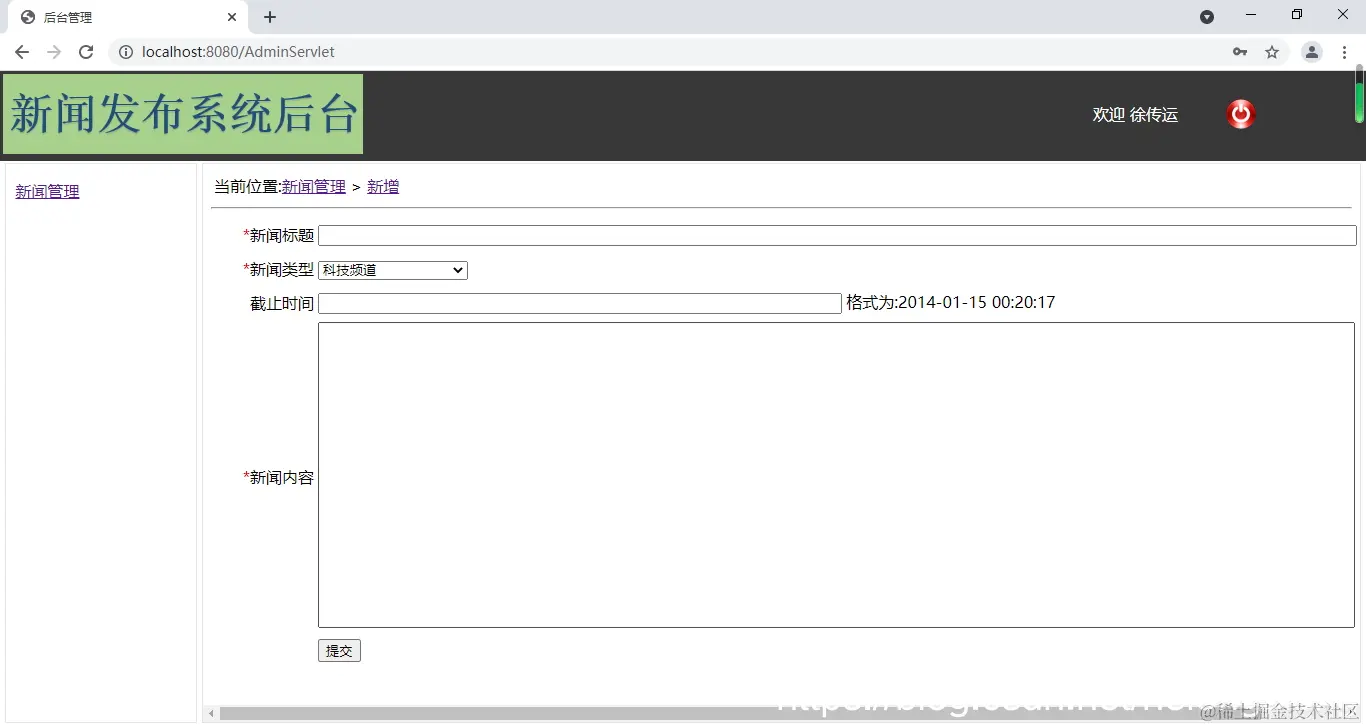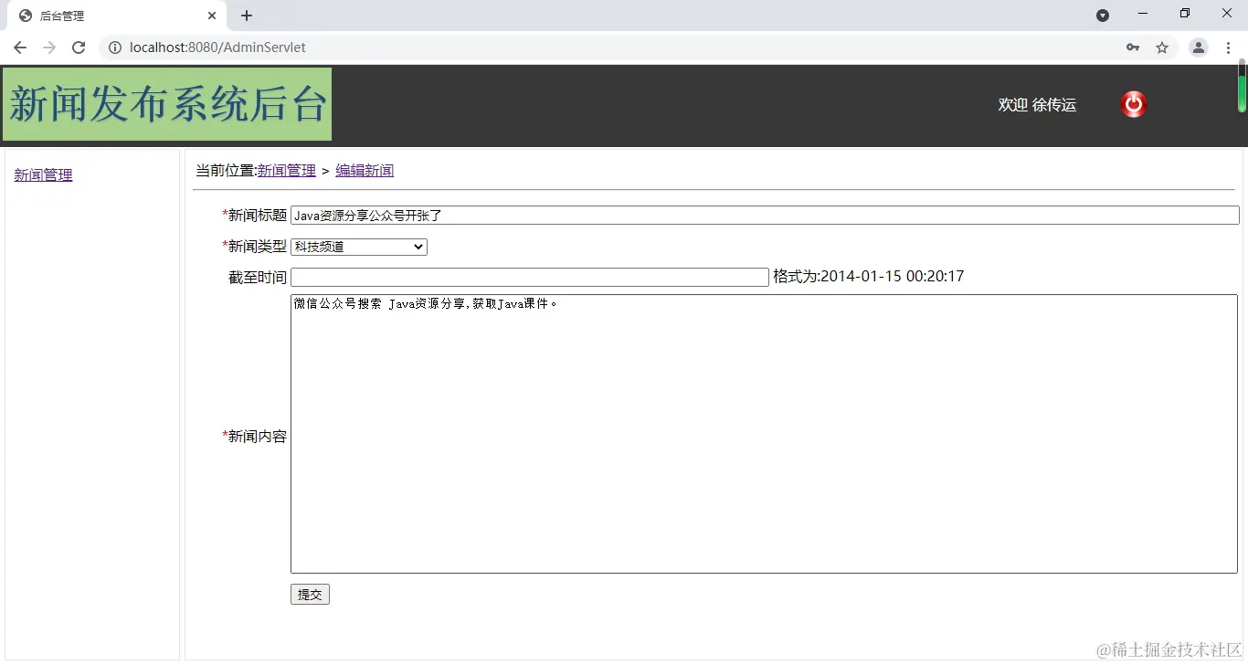 当前位置:<a href="admin/NewsServlet">新闻管理</a>