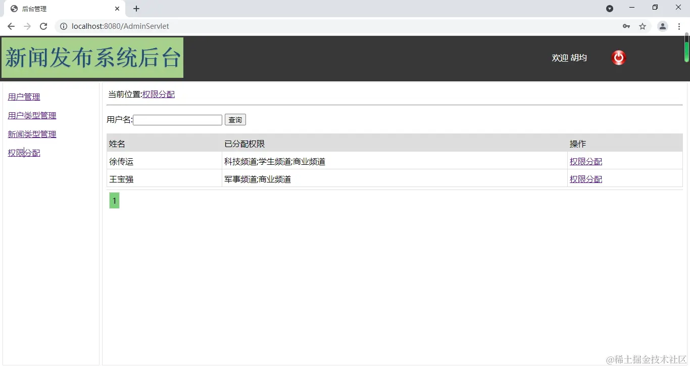 用户发布新闻的权限分配