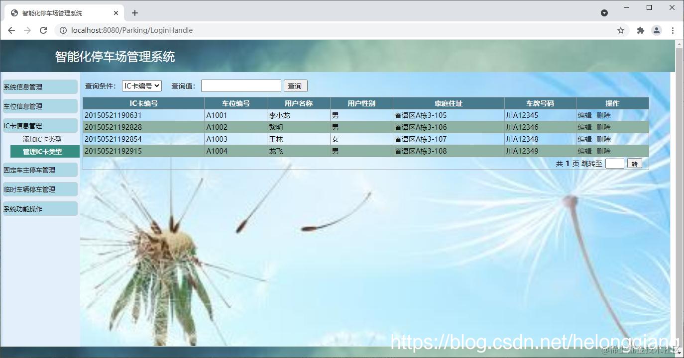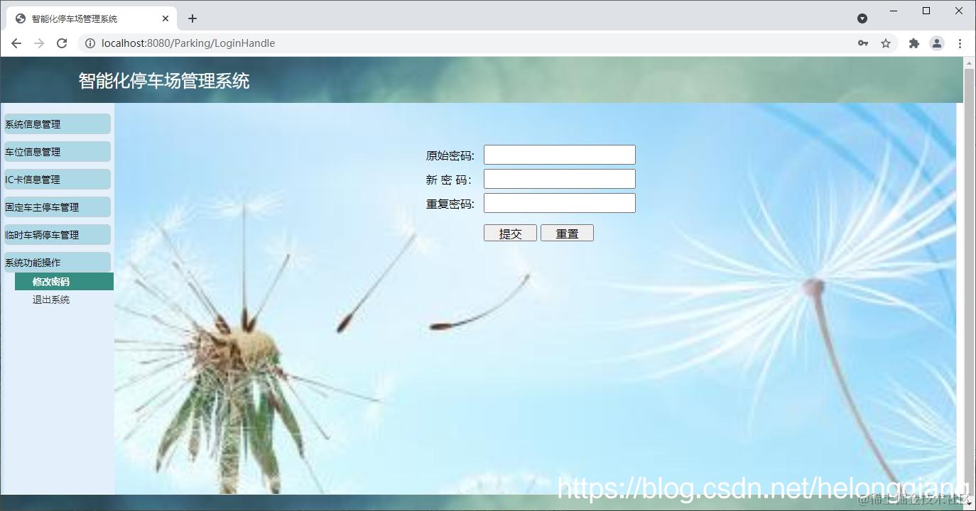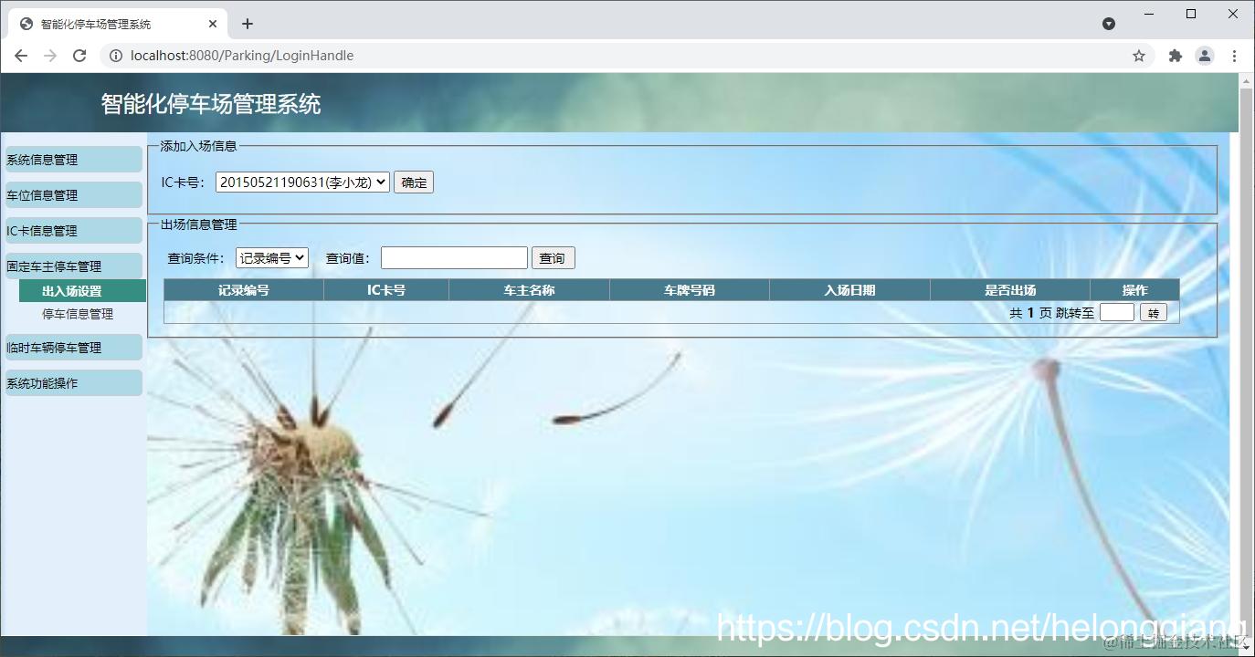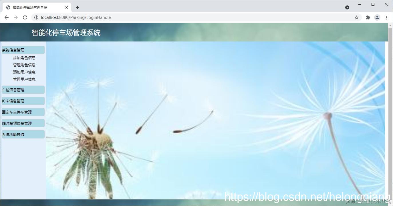 基于Web停车场管理系统主要用于实现停车场相关信息管理,基本功能包括:系统信息管理模块、车位信息管理模块、IC卡信息管理模块、固定车主停车管理模块、临时车辆信息管理模块、系统功能操模块等。本系统结构如下: