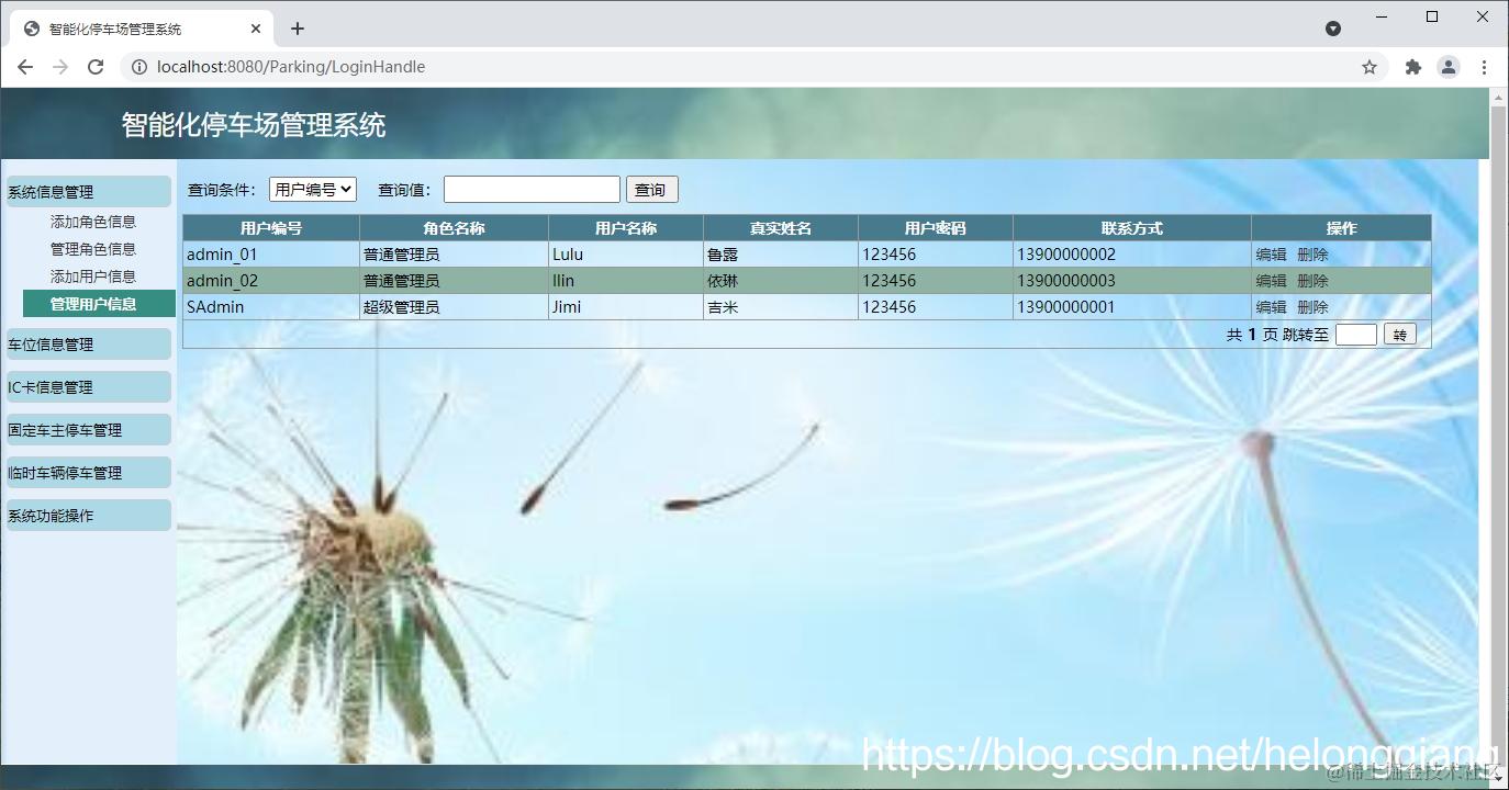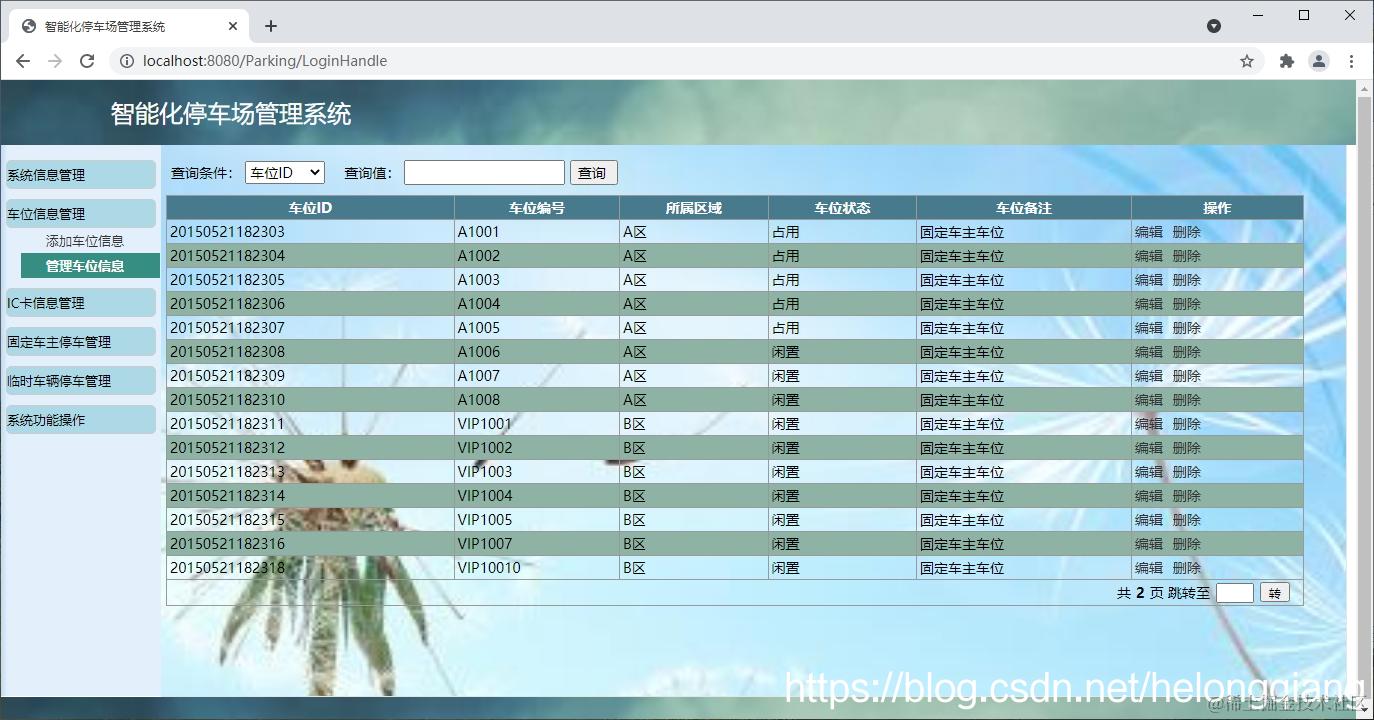 (2)车位信息管理模块:车位信息的增加、删除、修改和查询。