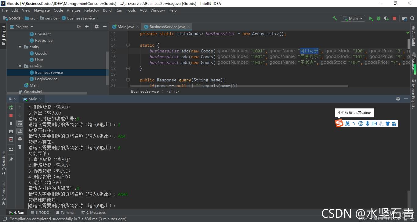 businessList.add(new Goods("1002","百事可乐","101","3","福建福州"));