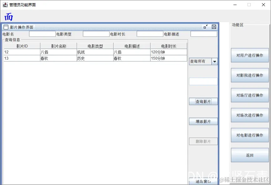 5.对电影进行操作:电影信息的查询、删除、增加;