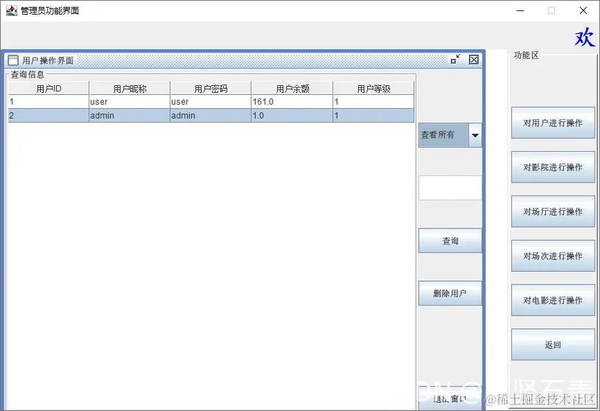 1.对用户进行操作:用户信息的查询、删除;
