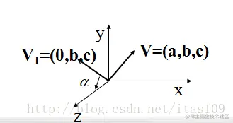 也就是说这里找了一个这个由V1和V组成的面比较好求的向量来计算角度α,也就是下图中的V1向量。