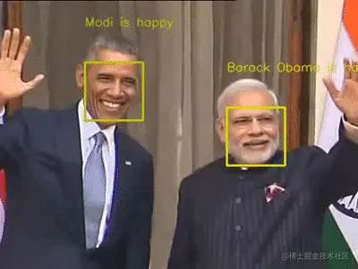 人脸表情和性别识别框架中,首先加载已训练好的表情 和性别分类模型以及相关配置文件,而针对待检测人脸图像, 抓一帧图,找到表情和性别坐标信息,将其像素大小调整为 64 × 64。然后,人脸图像经网络模型向前计算,与训练好的 模型中的权重进行比较,得到预测的每一个情感和性别分类 标签的得分值,最大值即预测结果。面部表情和性别分析视 觉结果如下 所示。