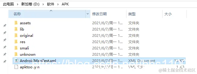第四步:进入D:\软件\APK目录下查看反编译后的内容