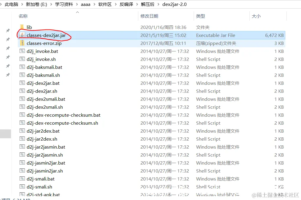 1.把”classes.dex“这个文件放到 dex2jar-2.0 工具目录下;