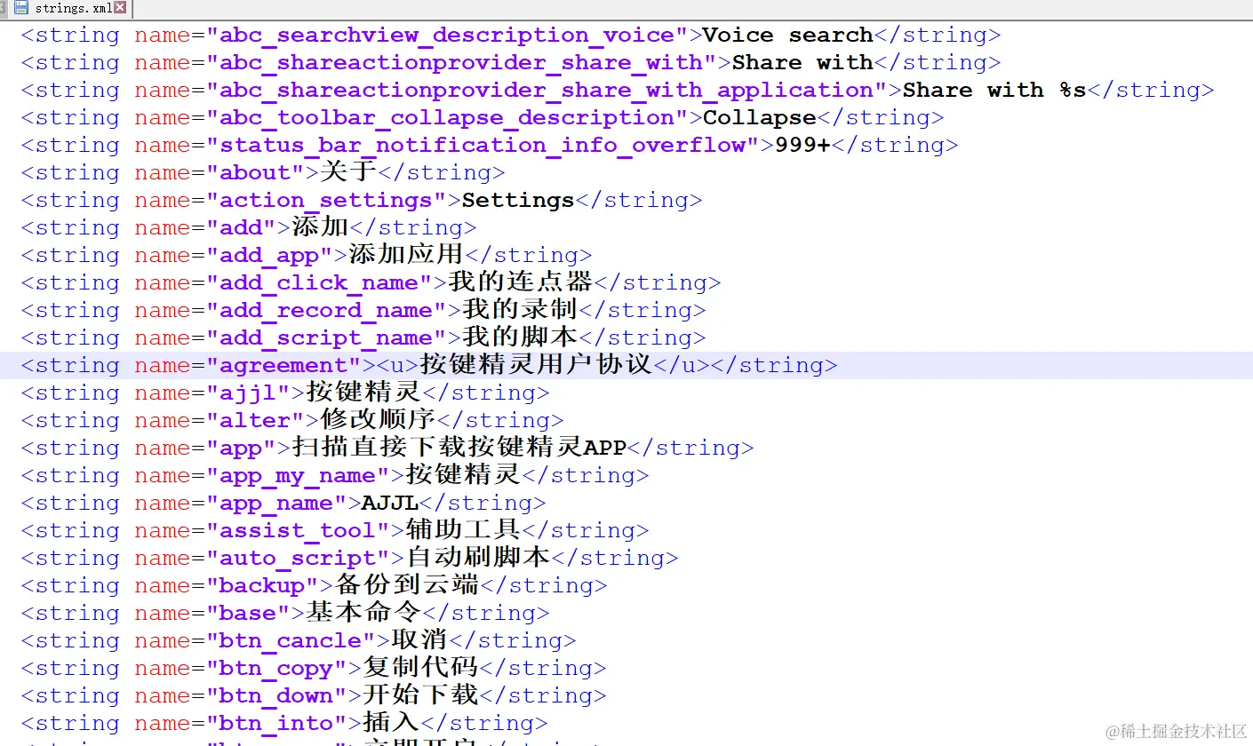 进入\res\values\strings.xml,这个用Notepad++打开,如下图,看看是不是要找的内容?