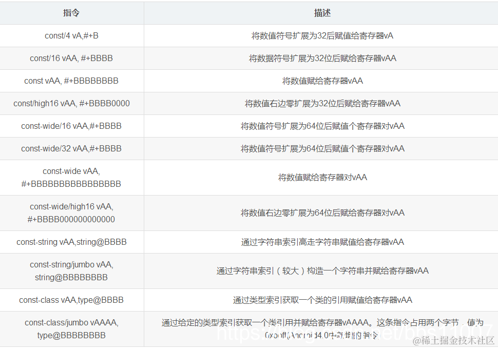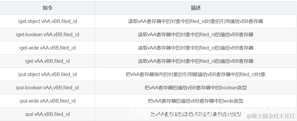 array vA,vB,type@CCCC”相同,只是寄存器值与指令的索引取值范围更大(Android4.0中新增的指令)。