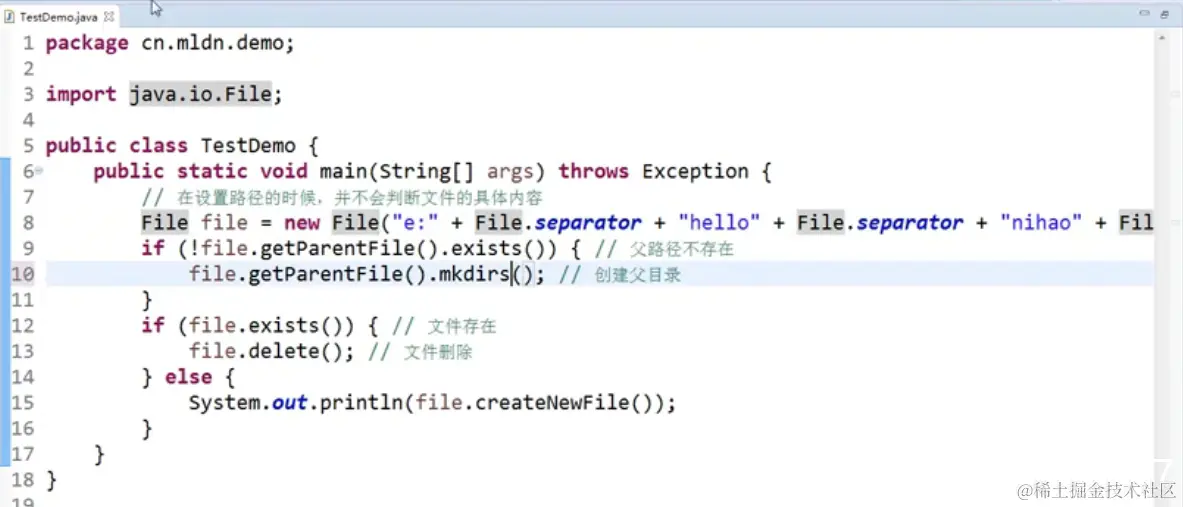 mkdir这个方法是适合只有一个父类时,如:e:\\test.txt,如果该目录下存在多级文件夹,那么就用mkdirs方法,如:e:\\hello\\nihao\\test.txt,代码如下: