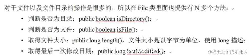 java.io.File类用于描述文件和目录路径和信息,可以获取文件名称、大小等属性信息 (一般只对文件操作,不能对文件内容操作)
