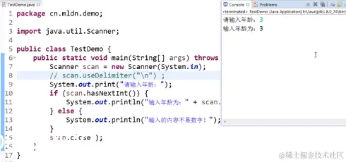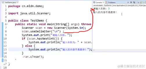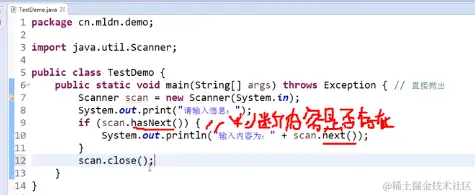Scanner默认最古老方式是利用String来接收数据,但是很多时候内容肯是数据,或者输入的内容还需要我们的验证,那么我们在这种情况下Scanner类发生了一下变化,增加了一推的hasNextXxxx()、nextXxxx()的方法。