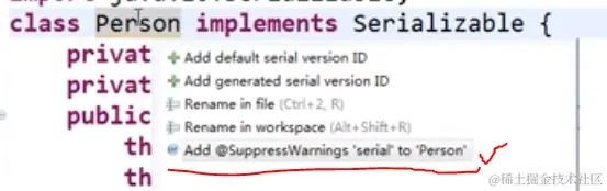 这两个是序列版本的UID,这是什么意思呢?它在最早版本只得是你可以在JRE版本使用,意义不大,只是不用这个警告