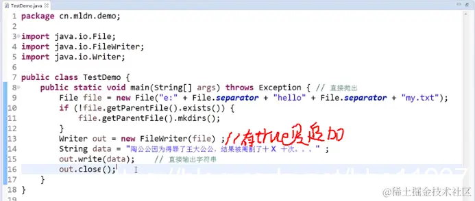 Writer范例代码(在下面),把close()去掉(文件也删除),执行的时候,会新生成文件内容为空(不能直接存储)